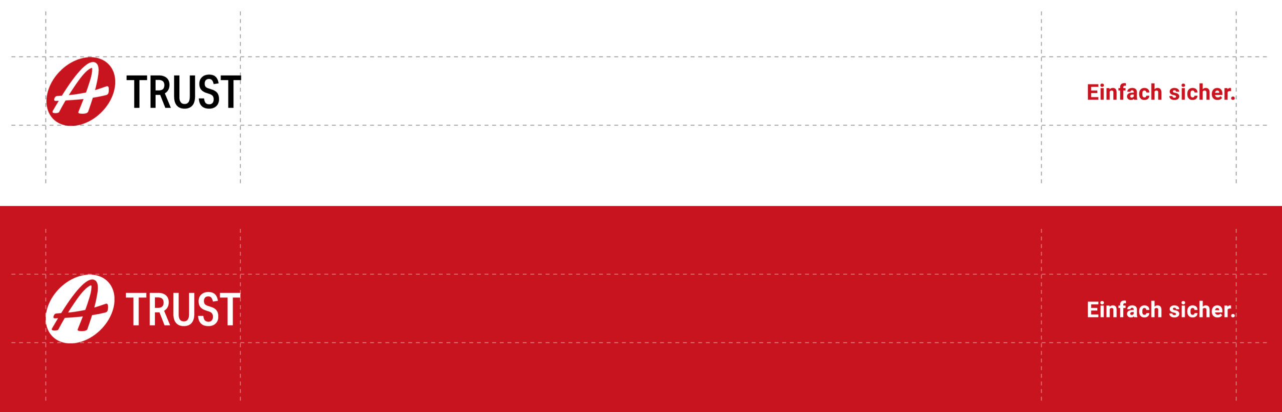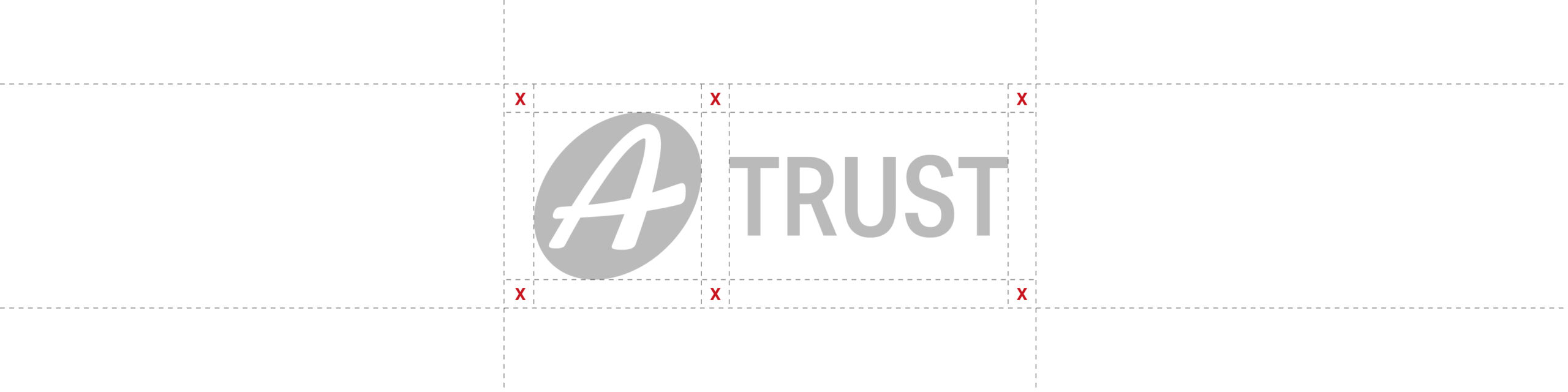 Das Logo sollte immer mit einem Mindestabstand zu anderen Gestaltungselementen eingesetzt werden. Dieser Mindestabstand entspricht dem Abstand zwischen dem Icon „A“ und dem Schriftzug „TRUST“.